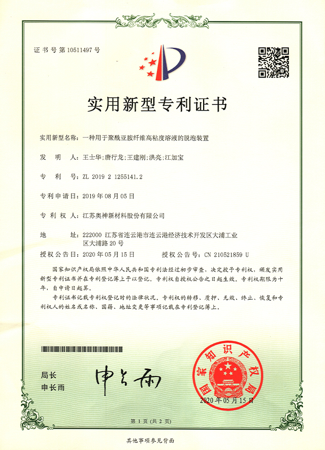 一種用于聚酰亞胺纖維高粘度溶液的脫泡裝置